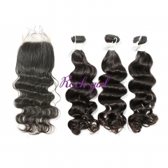 #1b Brazilian Virgin Human Hair Weft with 4x4 Closure Body Wave